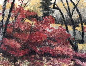 Beachcroft Path. 40”x30”, oil on linen. At Artemis Gallery.Eagle Lake Diptych. 40”x60” oil on linen.Pink Lady. 36”x36” oil on linen.Canon Brook. 24”x30”, oil on linen. At Artemis Gallery. Cleome. 18”x18”, oil on linen. Sky Glyphs. 36”x36”, oil on linen. Wild Apple. 10”x10”, oil on linen. Rural Road. 18”x14”, oil on linen. At Artemis Gallery. Echo Lake. 36”x36”, oil on linen.Late Spring. 18”x24”, oil on linen.Glow, 36”x36”, oil on linen. Ash, Maple, Cedar, Willow. 18”x24”, oil on linen. At Artemis Gallery. Leafing Out. 14”x18” oil on linen.Tree Lines. 30”x30” oil on linen. Garden Study. 18”x14” oil on linen. Maple Swamp. 36”x30”, oil on linen.Arable. 18”x24” oil on cradled board.Acadia Meadow. 30”x40” oil on linen.May Evening. 18”x18”, oil on linen. Shad Bloom.